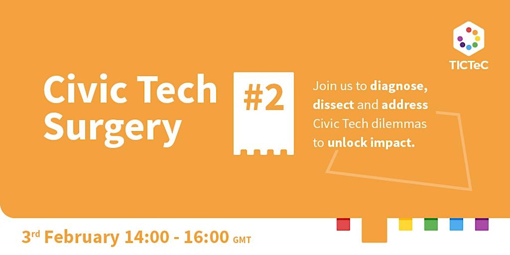 Sign up to come along here: https://www.eventbrite.co.uk/e/tictec-civic-tech-surgery-2-accessibility-and-inclusivity-tickets-231439330267, and please feel free to add to the conversation in advance by adding your thoughts to this Padlet board: https://padlet.com/gemma159/k6t3o55h7bff9bft