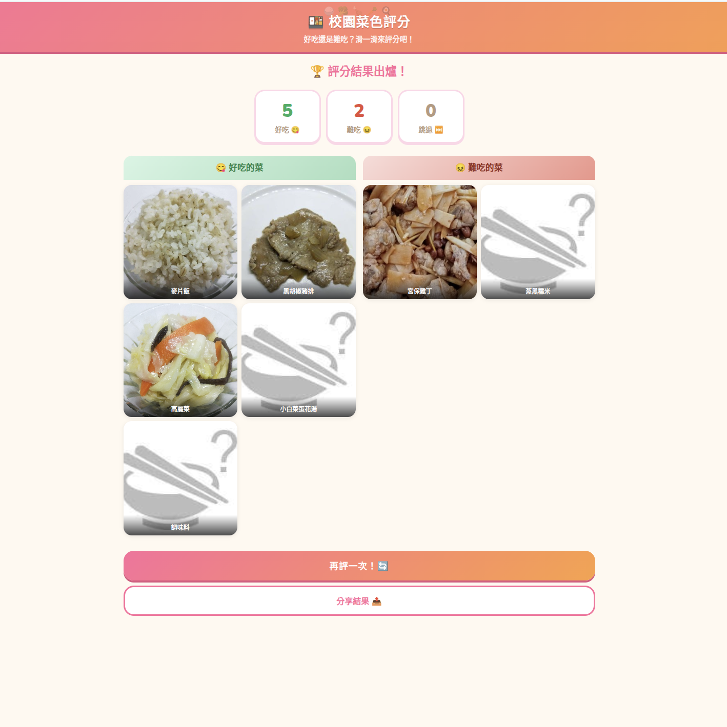 針對營養午餐做了一個工具,讓孩子可以直接針對菜色給予評選