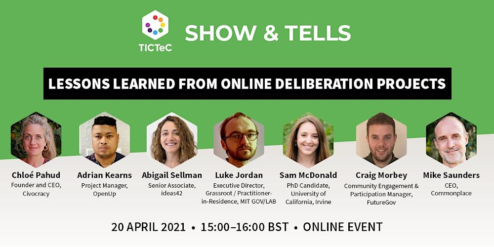 明天週二台灣時間晚上十點,TICTeC 有個關於 online deliberation 的分享,看有沒有人有興趣免費報名參加